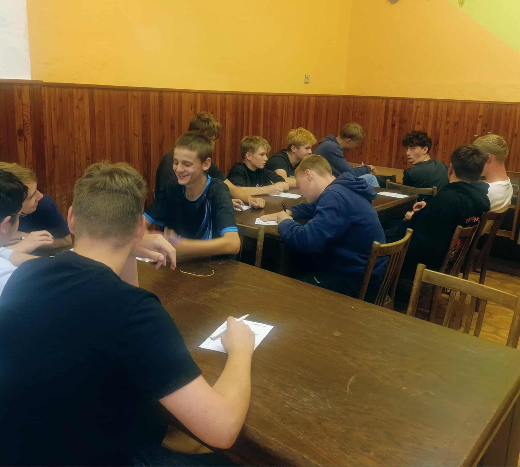 Ve čtvrtek 25. září 2025 se na domově mládeže soutěžilo o sto šest! Tradiční Vědomostní kvíz přilákal 23 soutěžících, kteří se poprali s 30 otázkami z nejrůznějších oblastí – od přírody a sportu, přes Českou republiku a filmové hlášky, až po slovní přesmyčky a zapomenutá slova, která by nepoznal ani Google překladač.