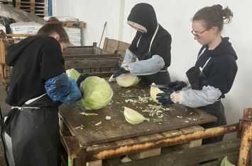 Pomoc žáků 1. ročníku oboru Kuchař – číšník při výrobě kysaného zelí v ZD Podchlumí Dobrá Voda