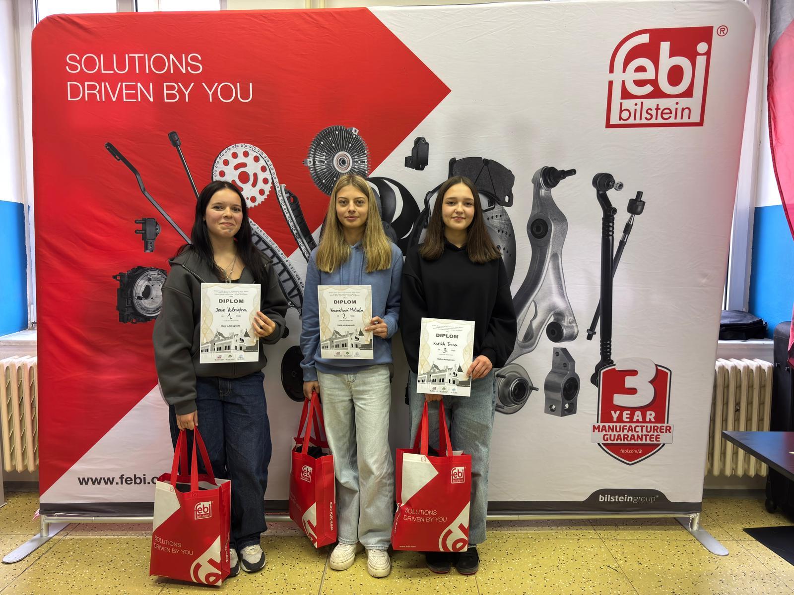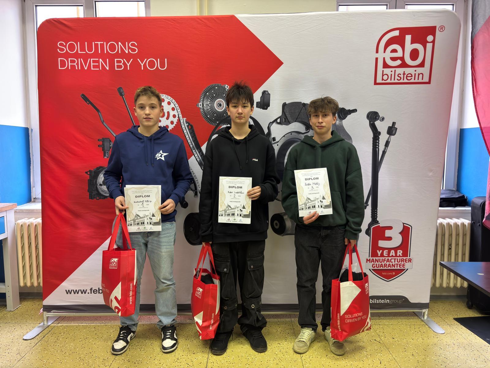 Velké poděkování patří sponzorovi této disciplíny, společnosti Febi Bilstein, významnému dodavateli náhradních dílů pro osobní i nákladní automobily. Naší soutěže se za tuto firmu zúčastnil pan Lukáš Vinogradcij, který byl zároveň jedním z hodnotitelů. Právě díky němu si všichni žáci mohli odnést cenné dary a hezké vzpomínky na tento příjemný den.