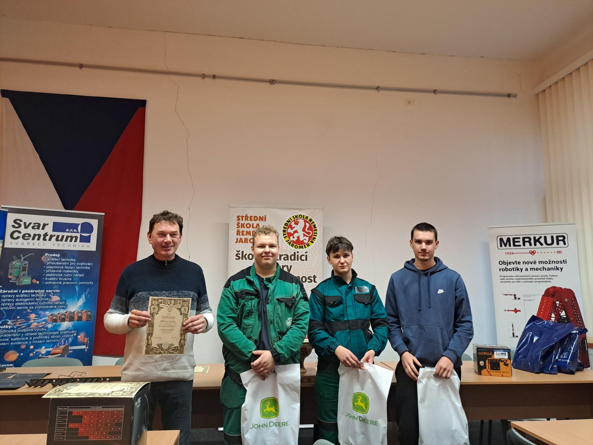 Konal se třetí ročník soutěže pro opraváře zemědělských strojů v Jaroměři. Soutěže se zúčastnily Střední škola řemeslná Jaroměř, Zemědělská akademie a Gymnázium Hořice a také naše SŠTŘ Nový Bydžov. Na soutěžící čekalo před odbornou porotou celkem pět disciplín - vědomostní test, pilování, svařování plamenem, kování, výměna kola a seřízení vůlí ventilů na traktoru.