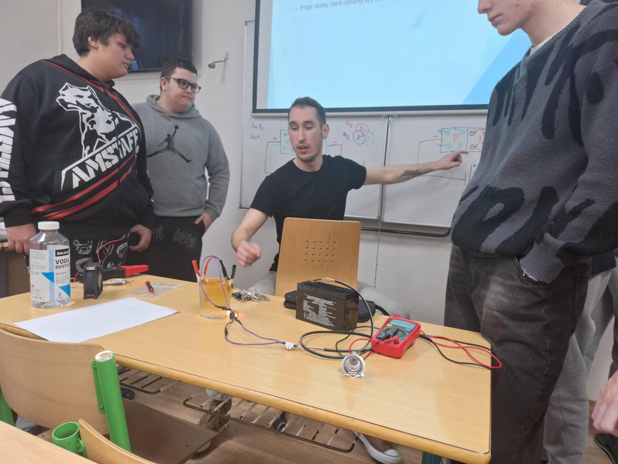 Díky tomu mohli naši žáci z 1. ročníku na vlastní oči vidět, jak se mění vlastnosti prostředí po přidání iontů do čisté vody a proč vedení proudu v kapalinách není jen nutnou teorií z učebnice, ale praktickým jevem, se kterým se budou v praxi setkávat.