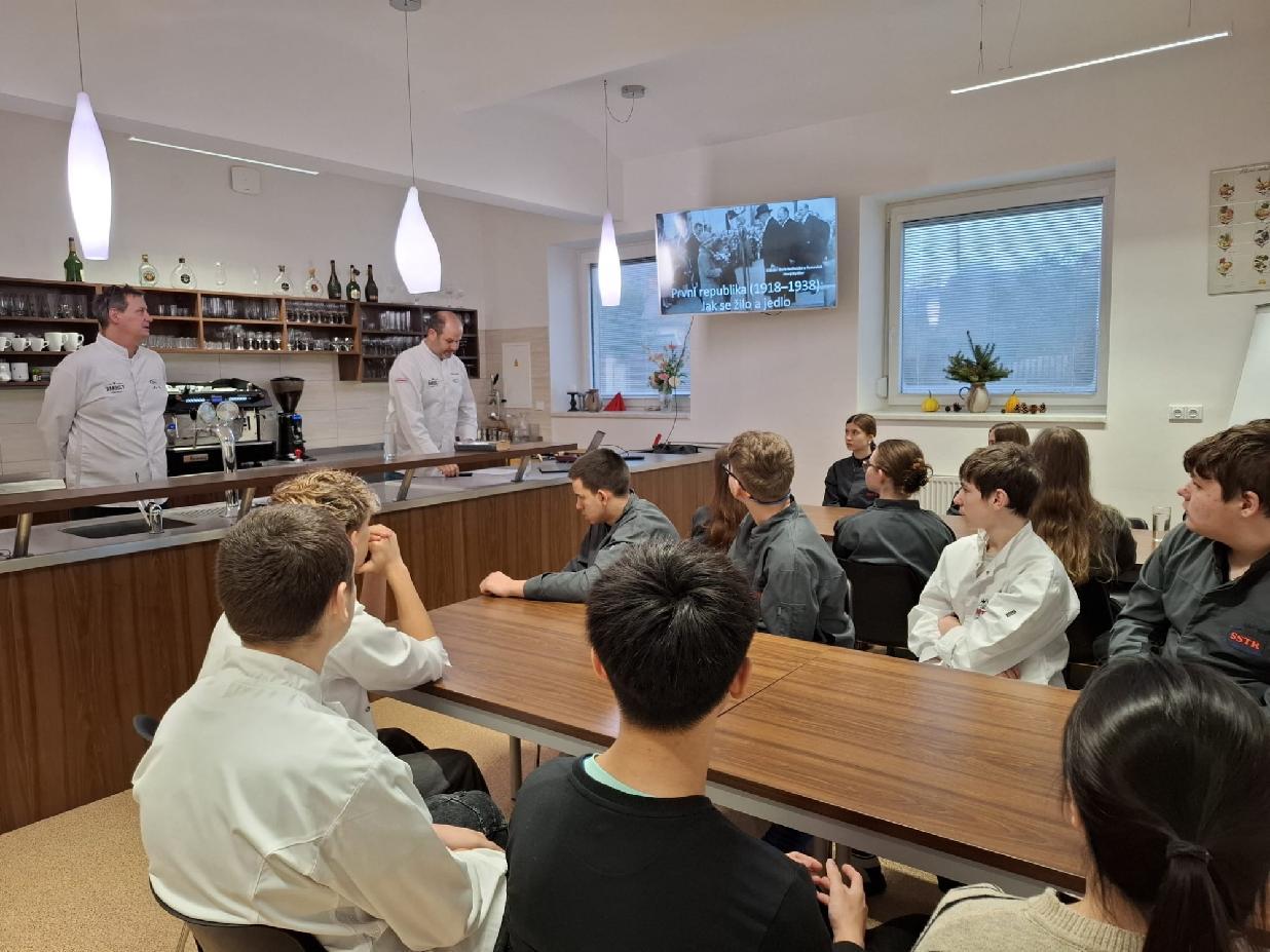 V adventním čase měli žáci oboru Kuchař–číšník jedinečnou příležitost seznámit se s pokrmy inspirovanými kuchyní Magdaleny Rettigové a obdobím 1. republiky. Odborná prezentace přiblížila historii i specifika tehdejší gastronomie a plynule na ni navázala praktická ukázka.