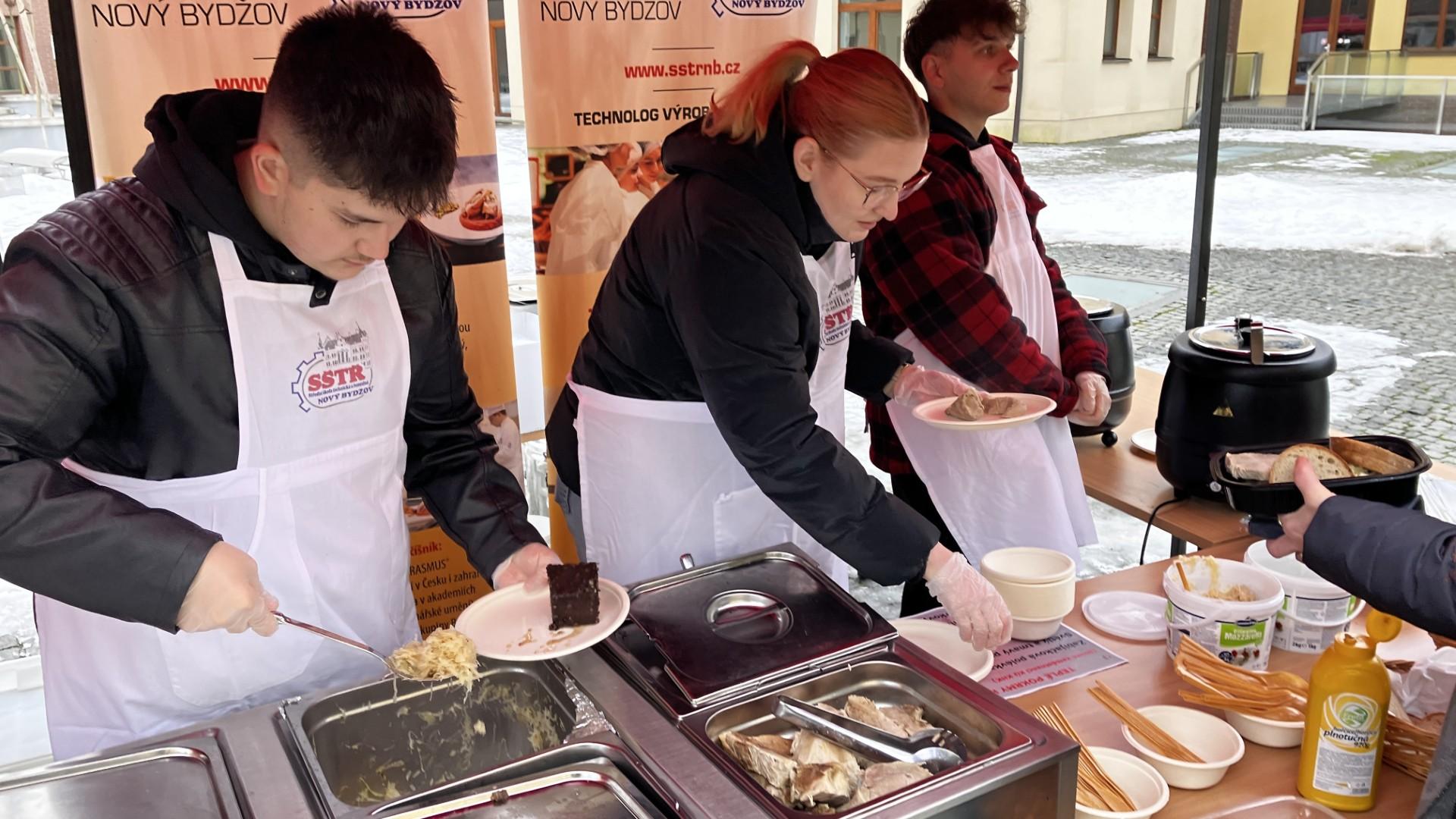 Velká pochvala patří všem zaměstnancům Střediska praktického vyučování v Chlumci nad Cidlinou, kteří vše pro zabijačkové hody připravili a žákům obou ročníků oboru Technolog výroby potravin, kteří zajišťovali propagaci a prodej výrobků přímo na místě samém.