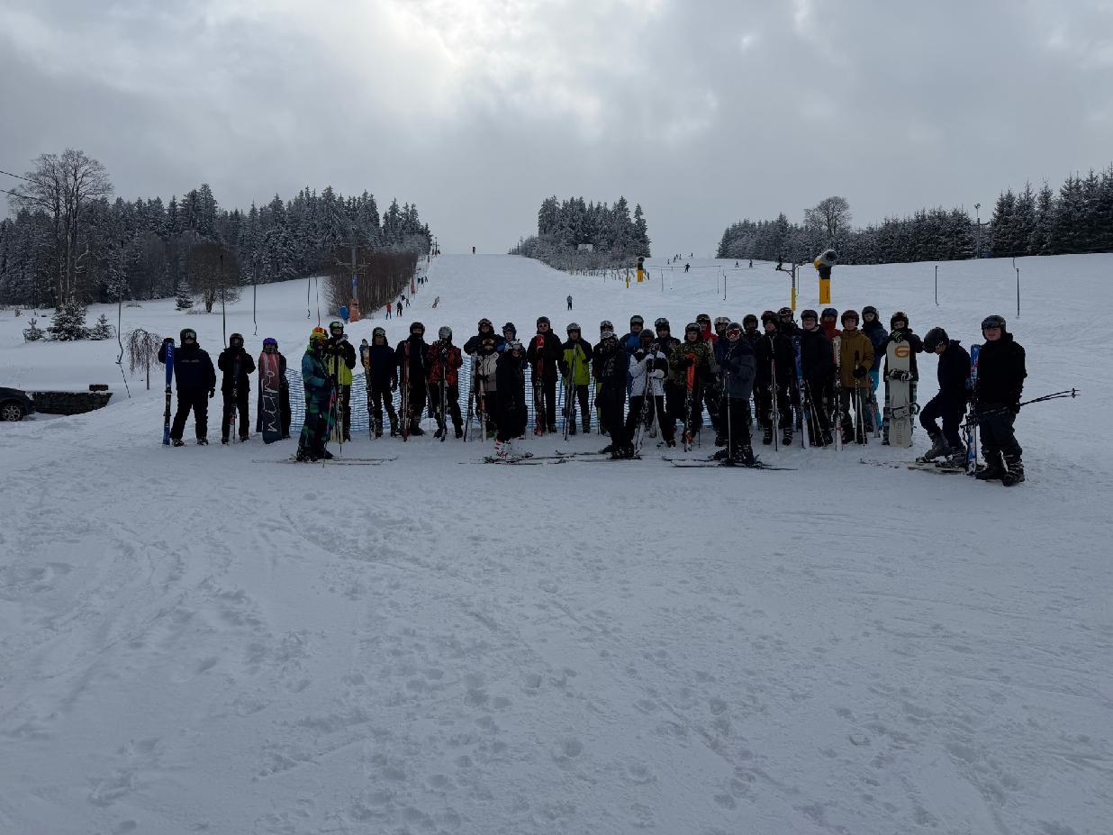 Lyžařský kurz 1. ročníků proběhl v termínu 15.–19. února 2026 v příjemném prostředí Českých Petrovic. Do hor vyrazilo 40 žáků v doprovodu čtyřčlenného pedagogického týmu – a hned na úvod je fér říct, že většina účastníků stála dosud na lyžích spíš teoreticky než prakticky.