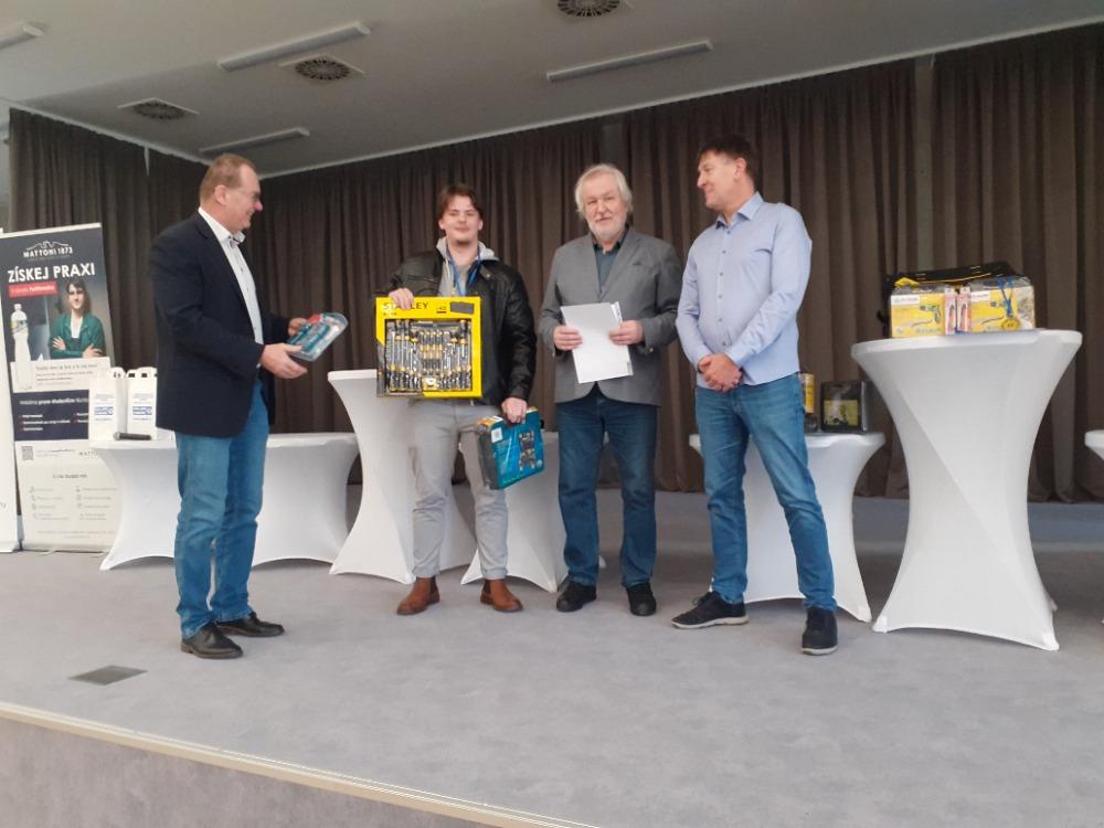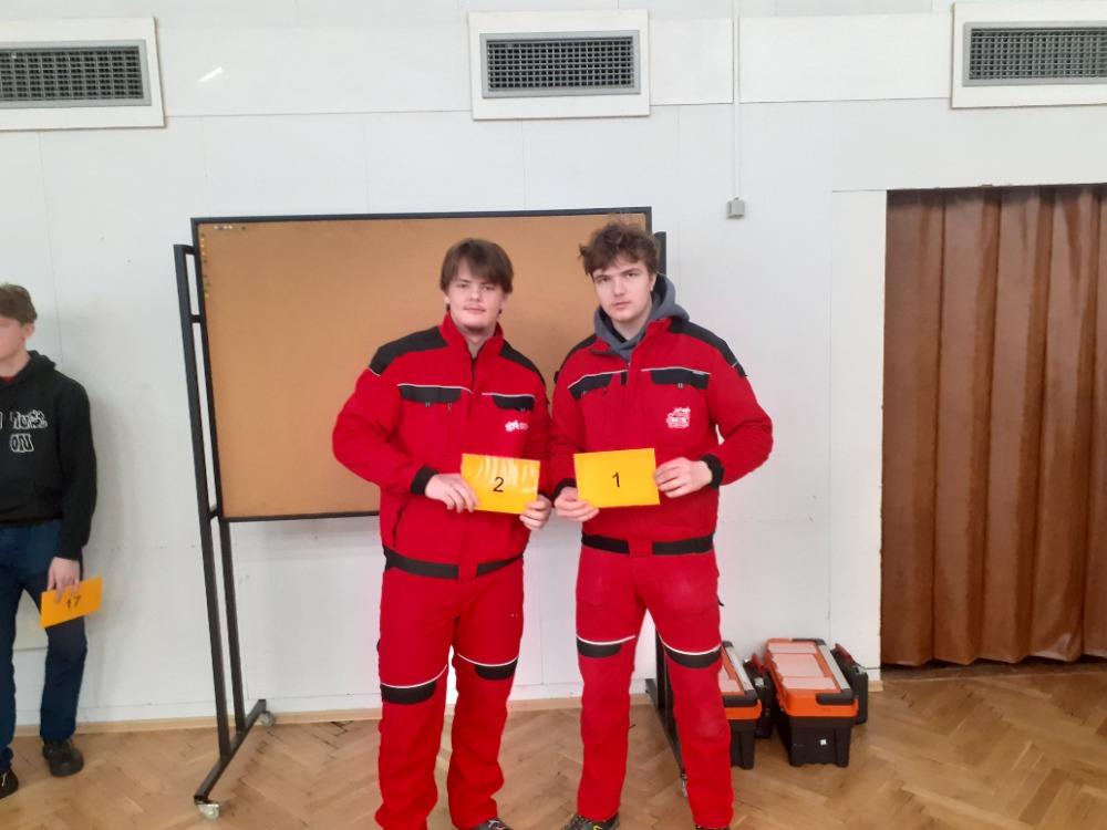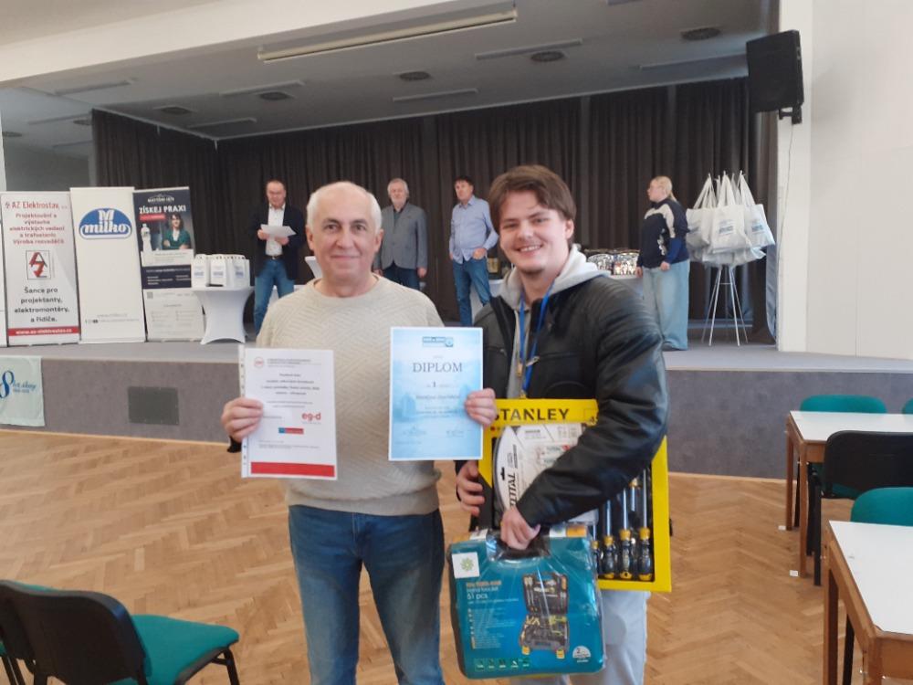 Za naši školu se soutěže zúčastnil žák třetího ročníku oboru Elektrikář-silnoproud Adam Semenec a poprvé v historii našich účastí na této soutěži i žák druhého ročníku Matěj Dvořák s pedagogickým doprovodem učitele odborného výcviku Jaroslavem Mansfeldem.