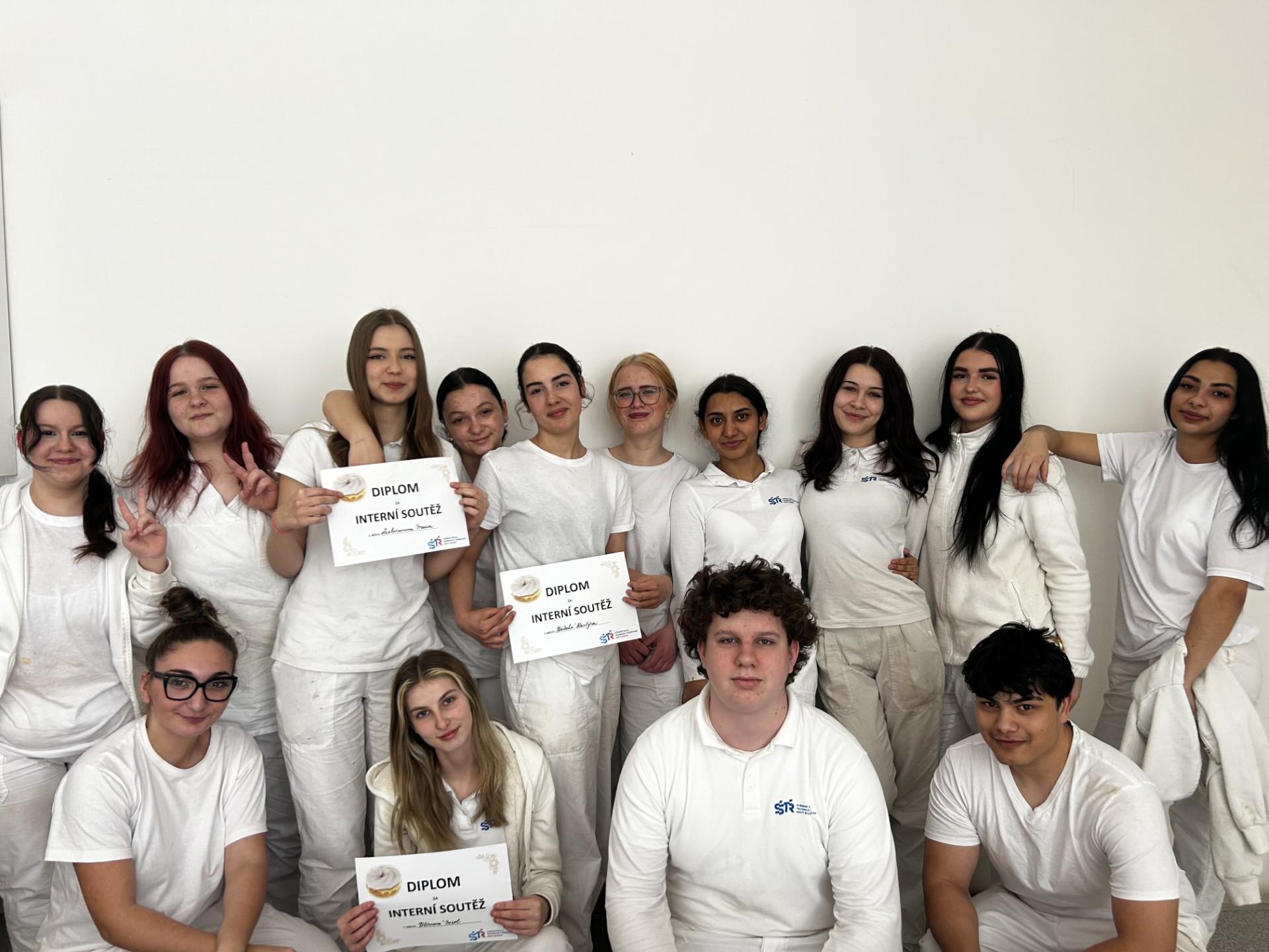 Žáci 1. ročníku oboru Cukrář si v rámci odborného výcviku vyzkoušeli své dovednosti při interní soutěži v přípravě věnečků z pálené hmoty. Cílem této soutěže bylo nejen porovnat jednotlivé výrobky, ale především umožnit žákům prakticky využít znalosti a dovednosti, které během výuky získali, a zároveň si vyzkoušet práci pod mírným soutěžním tlakem. Každý žák měl za úkol samostatně připravit věnečky tak, aby splňovaly požadované technologické i estetické požadavky. Důraz byl kladen především na správnou přípravu a zpracování pálené hmoty, její vhodné tvarování a také na správný průběh pečení, který je pro výslednou kvalitu výrobku velmi důležitý.