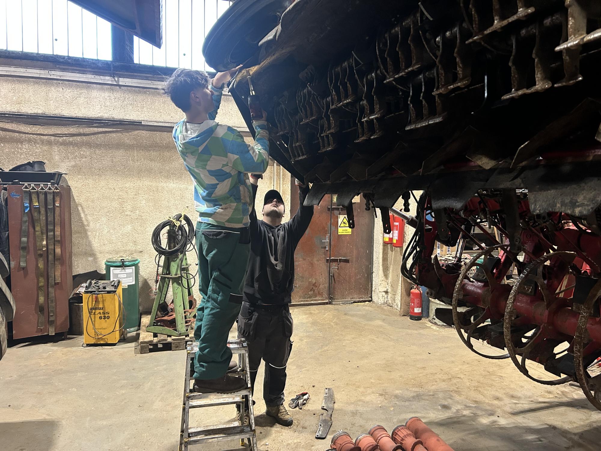 Každý žák a nebo dvojice žáků jsou přiděleny k danému stroji, na kterém pracují zaměstnanci, kteří žákům zadají práci. Žáci samostatně pracovali na žacím, vyorávacím, čistícím a vykládacím ústrojí. Vyzkoušeli si i práci se svářečkou při navařování tvrdokovu. Všichni, kteří si vyzkoušeli tuto práci, byli nadšeni a vzpomněli si na sváření ve druhém ročníku s naším učitelem Petrem Beránkem