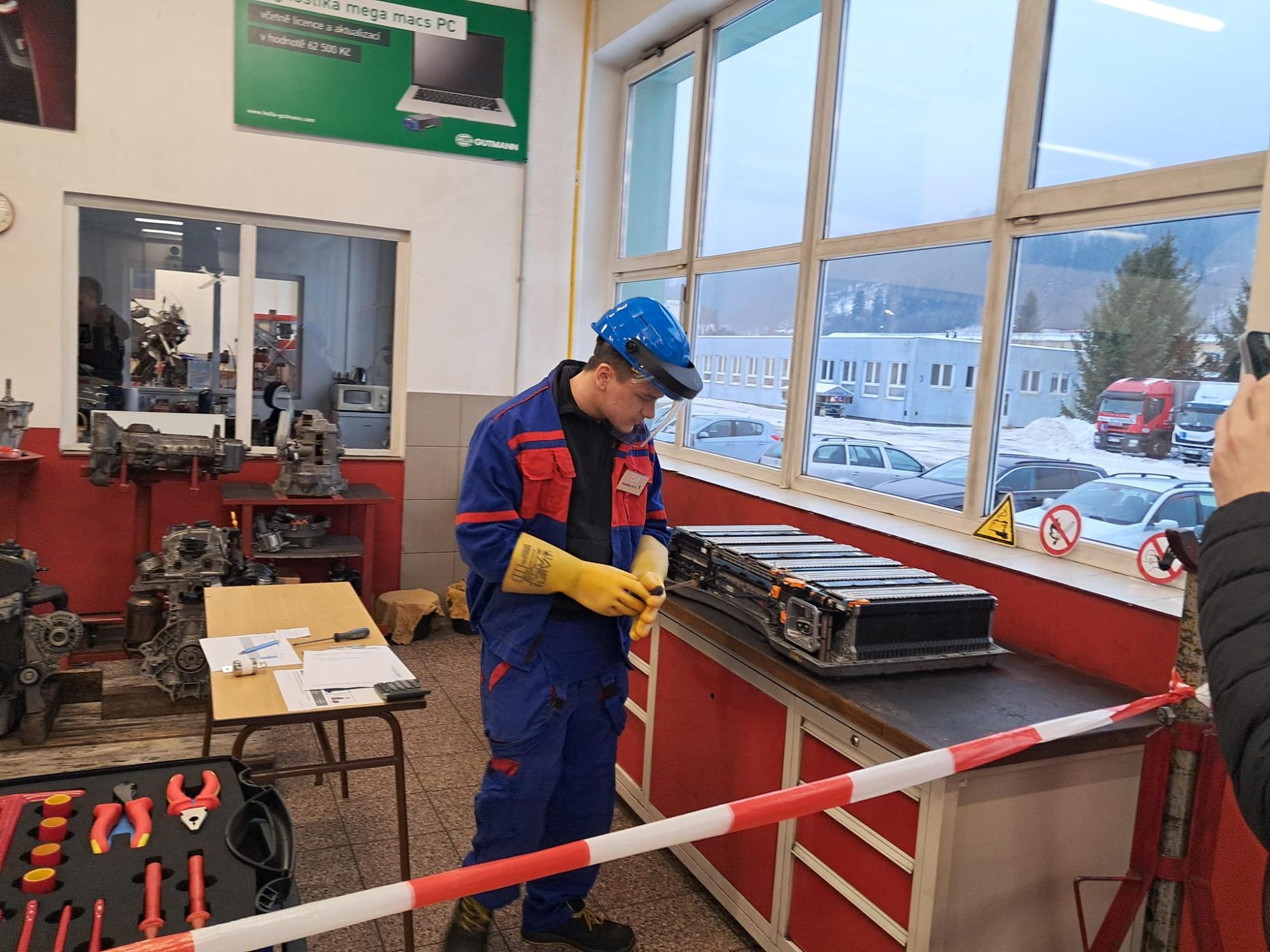 Na přelomu března a dubna proběhl v prostorách dílenského areálu Na Švarcavě kurz elektromobility pro žáky závěrečného ročníku oboru Mechanik opravář motorových vozidel. Žáci se během kurzu seznámili s požadavky na bezpečnost práce při opravách vozidel na elektrický pohon, správným označením pracoviště, uvedením vozidla do beznapěťového stavu, diagnostikou vysokonapěťového systému, měřením izolačních odporů a dalšími specifiky oprav vozidel na elektrický pohon.
