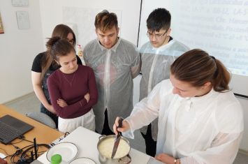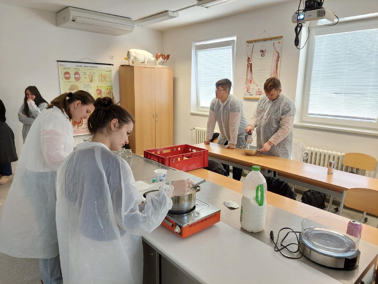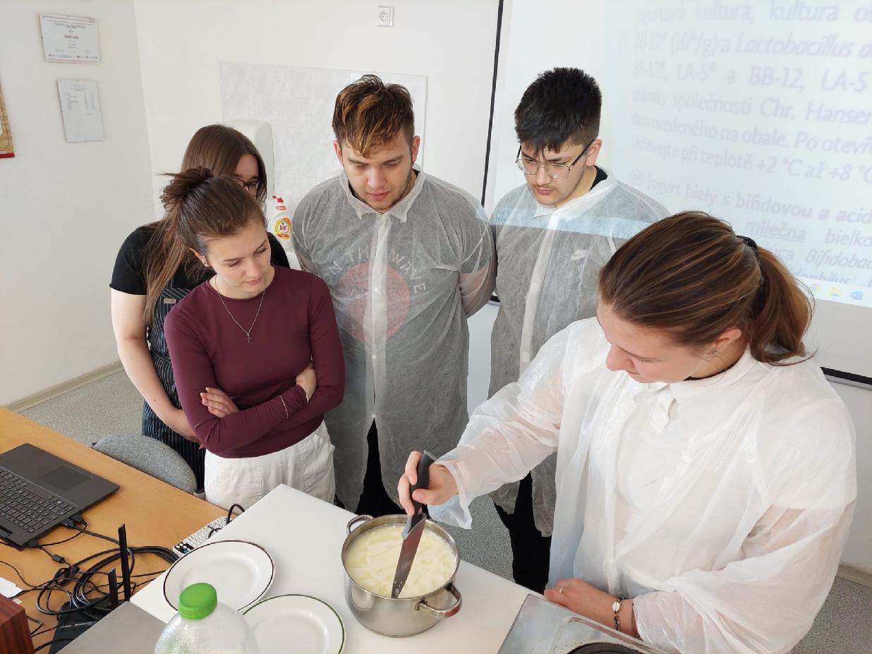 Součástí praktika byla také výroba jogurtu za využití termofilních bakterií. Ty přeměňují mléčný cukr (laktózu) na kyselinu mléčnou, čímž dochází ke srážení bílkovin a vytvoření typické jogurtové struktury.