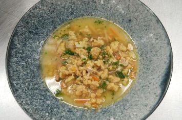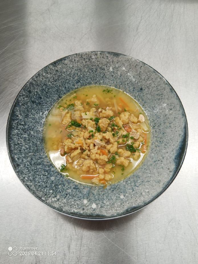 Následoval bažantí vývar se slovenskou zavářkou a zeleninou julienne, kde byl kladen důraz na čistotu chutí, správné technologické postupy a estetiku servisu.