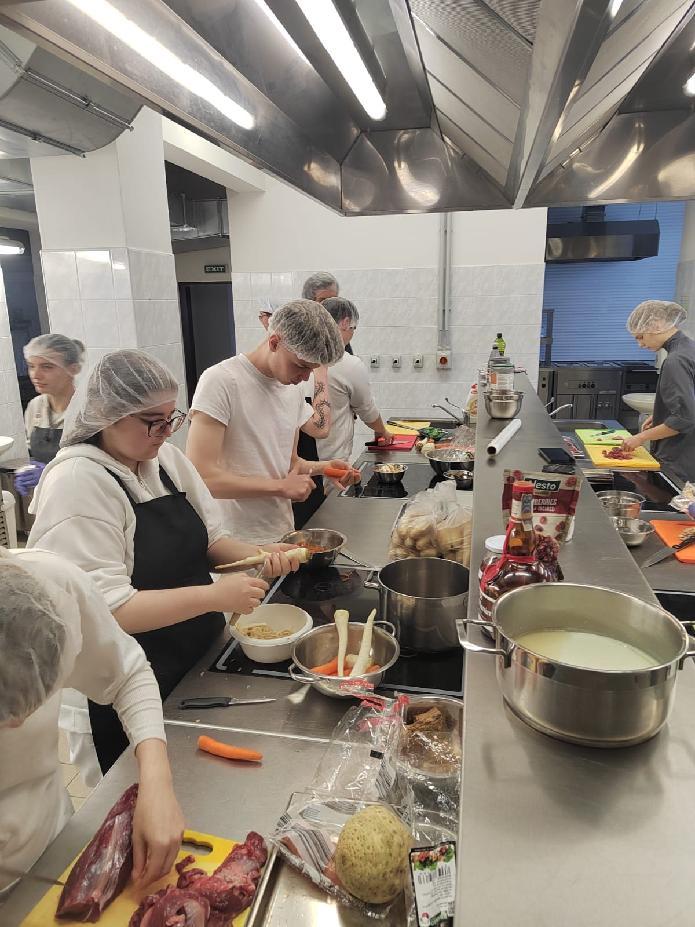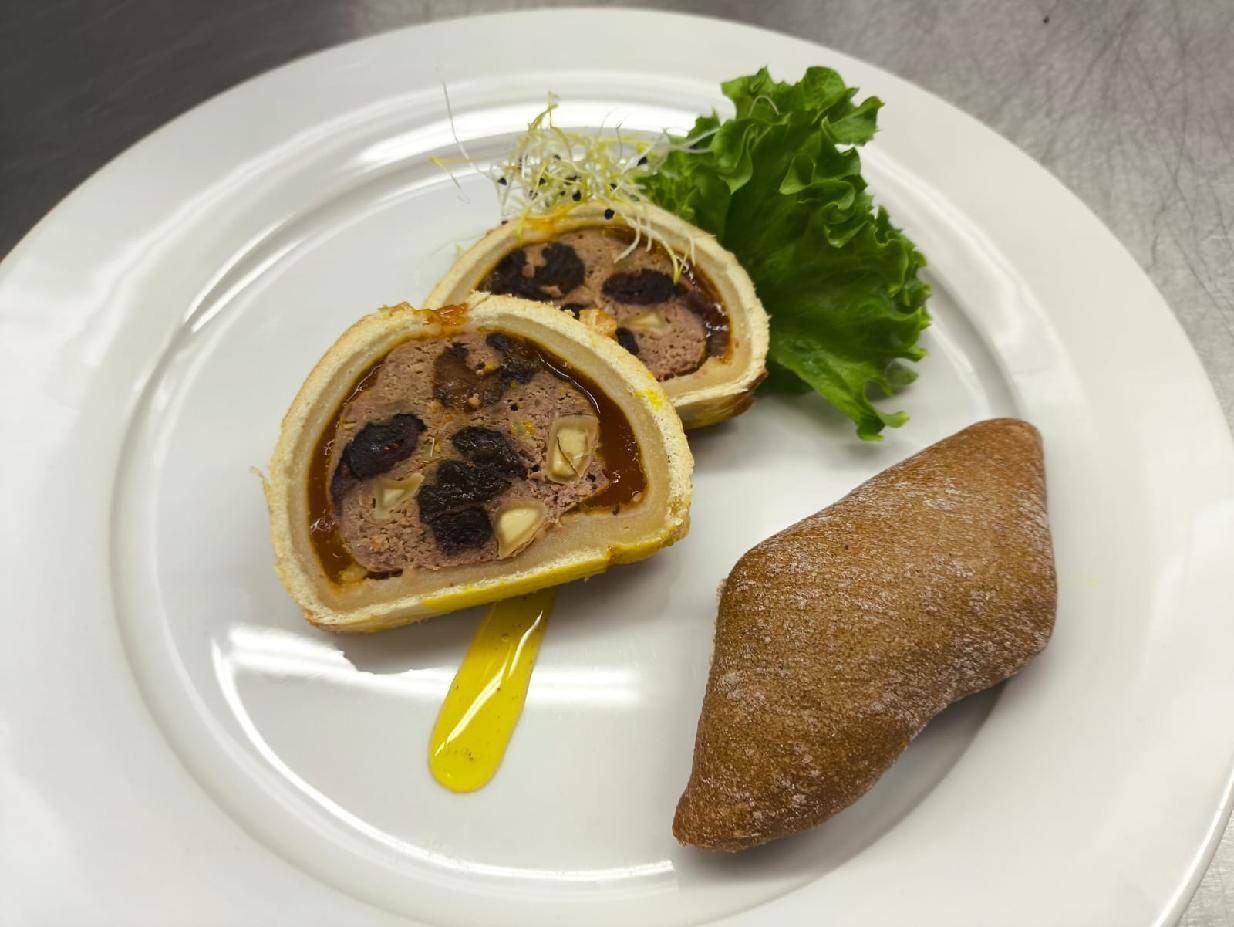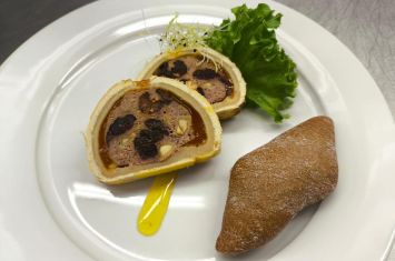 Úvodem si žáci vyzkoušeli přípravu zvěřinové paštiky se sušenými brusinkami, švestkou a mandlemi, podávané v křehkém máslovém těstě. Pokrm byl doplněn bílou pečenou bagetkou s bylinkami, která chuťový zážitek příjemně podtrhla.