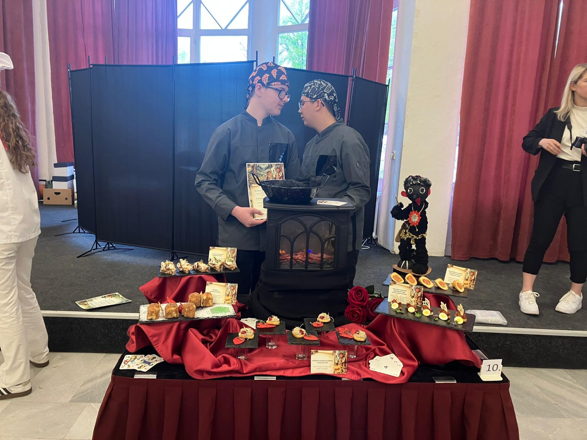Letošní, již 17. ročník prestižní gastronomické soutěže Gastro Poděbrady se nesl v kouzelném duchu tématu „Krása českých pohádek.“ Soutěž přilákala rekordní počet 104 účastníků, a konkurence tak byla mimořádně silná. O to více nás těší, že naši žáci ze Střední školy technické a řemeslné potravinářských oborů obstáli na výbornou a opět dokázali, že patří mezi špičku. Naši školu reprezentovali žáci oborů Kuchař-číšník a Cukrář, kteří soutěžili v několika disciplínách a předvedli nejen své odborné dovednosti, ale i kreativitu, nápaditost a týmového ducha. V kategorii kuchařů nastoupily hned dva týmy. Žáci 3. ročníku se představili jako Vodníci a žáci 1. ročníku jako Čerti. Oba týmy zaujaly porotu nejen tematickým zpracováním, ale především kvalitou připravených pokrmů. Jejich úsilí bylo oceněno stříbrným pásmem. Tým Vodníků navíc získal kromě diplomu také speciální ocenění za kreativitu, což je mimořádné uznání jejich nápaditého a originálního pojetí. Také naši číšníci se představili ve skvělém světle. Vystoupili v originálním pohádkovém pojetí jako Rumcajs a Manka, včetně propracovaných kostýmů. Jejich prezentace s názvem „Pozdrav z Řáholce“ zahrnovala nádherně prostřenou tabuli a celkově velmi působivý výkon. I oni si odnesli stříbrné pásmo. Navíc zaznamenali mimořádný úspěch v tradiční disciplíně – běhu číšníků, kde v konkurenci 23 dvoučlenných družstev vybojovali skvělé 3. místo a přivezli domů zaslouženou medaili. Velkou pochvalu si zaslouží také naše cukrářky, které představily precizně zpracovaný soutěžní dort na téma Perníková chaloupka. Jejich práce byla oceněna bronzovým pásmem, což opět potvrzuje jejich talent a pečlivost.